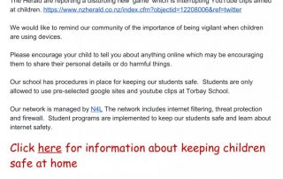 The Herald are reporting a disturbing new ‘game’ which is interrupting YouTube clips aimed at children. https://www.nzherald.co.nz/index.cfm?objectid=12208006&ref=twitter We would like to remind our community of the importance of being vigilant when children are using [...]